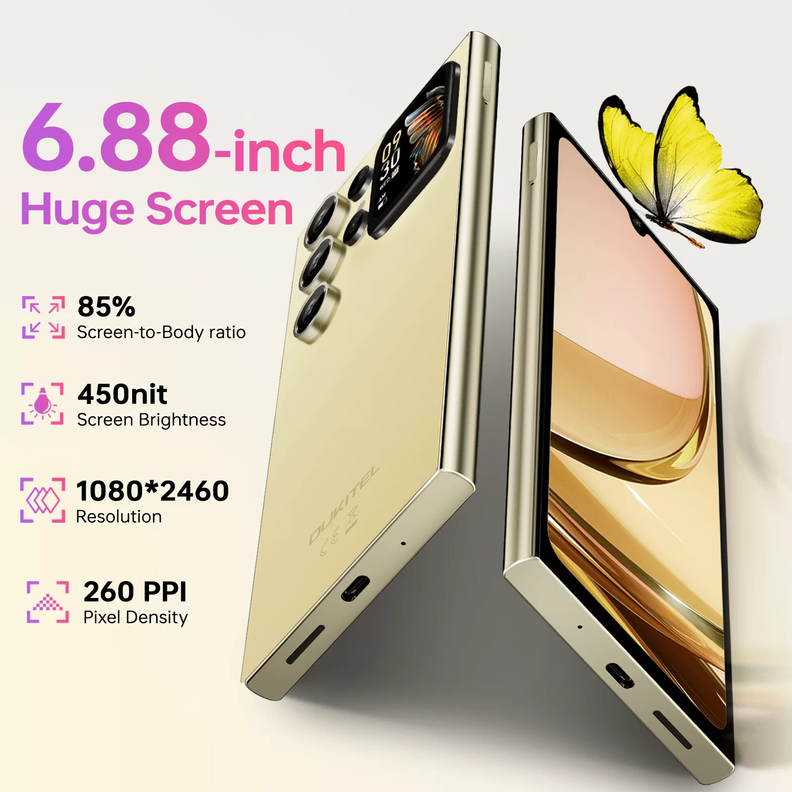 1. 6.88″ Display & 1.81″ Innovative Rear Touch Screen: Experience breathtaking clarity and ultra-smooth visuals on the OUKITEL C62 PRO smartphone’s massive 6.88-inch display. The premium 90Hz high refresh rate ensures incredibly fluid scrolling, seamless animations, and a lag-free gaming experience, making everything from watching videos to playing graphics-intensive games an absolute delight. Stay connected at a glance with the unique and functional 1.81-inch interactive touch screen on the rear. OUKITEL C62 PRO android phones conveniently displays the time, battery status, messages, and caller information.