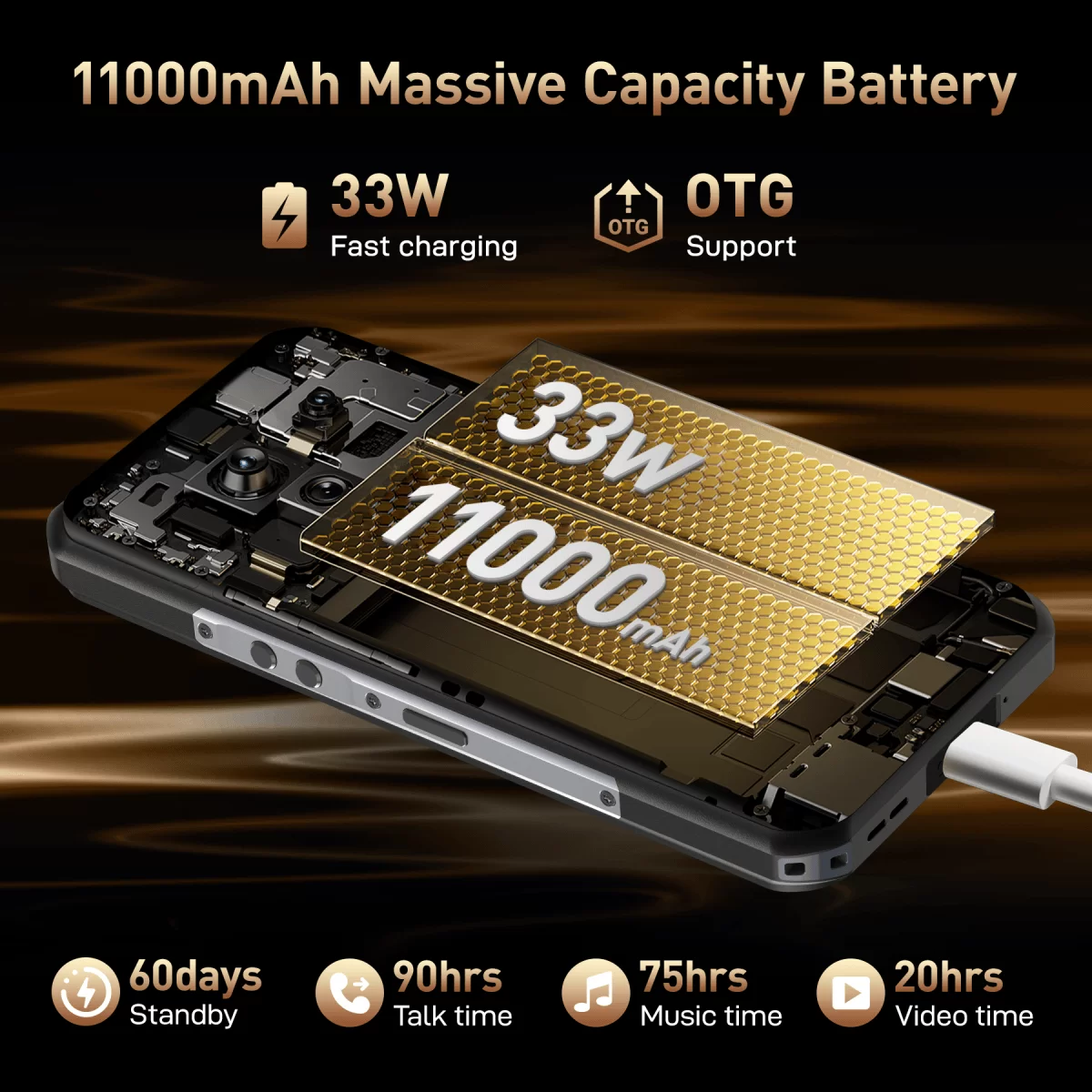 3. 33W Fast Charging &11000mAh Battery & OTG: This android phone unlocked is built with an impressive 11000mAh battery that can standby for up to 60 days on a single charge, so you don’t have to worry about running out of power on your while traveling or outdoor adventures. The 11000mAh battery can also support up to 75 hours of talk time, ensuring that you’ll stay connected and powered up all day long. Moreover, the 33W fast charger ensures that you spend less time waiting to charge and you can quickly replenish the battery and get back to work in no time. This rugged cell phone also has OTG function, allowing it to act as a mobile power source when needed.
