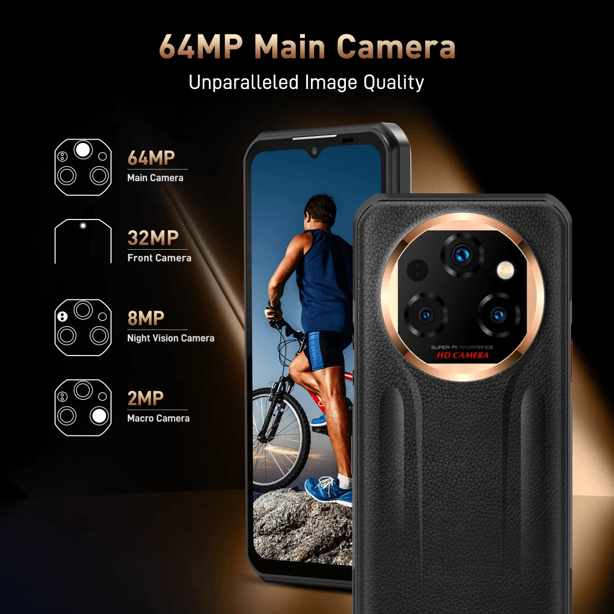 5. 64MP Main & 32MP Front & 8MP Night Vision Camera :OUKITEL WP39 Pro outdoor smartphone with a 64MP main camera, Allows you to take photos of your favorite landscapes anytime, anywhere, the 32MP front camera offers beautiful selfies and smooth and clear video calls, of course, if you like night photograph, OUKITEL WP39 Pro phone unlocked with 8MP night vision camera can capture many beautiful moment that ordinary phones can’t capture. There is also a 2MP macro camera that enables you to take close-up shots of tiny creatures.