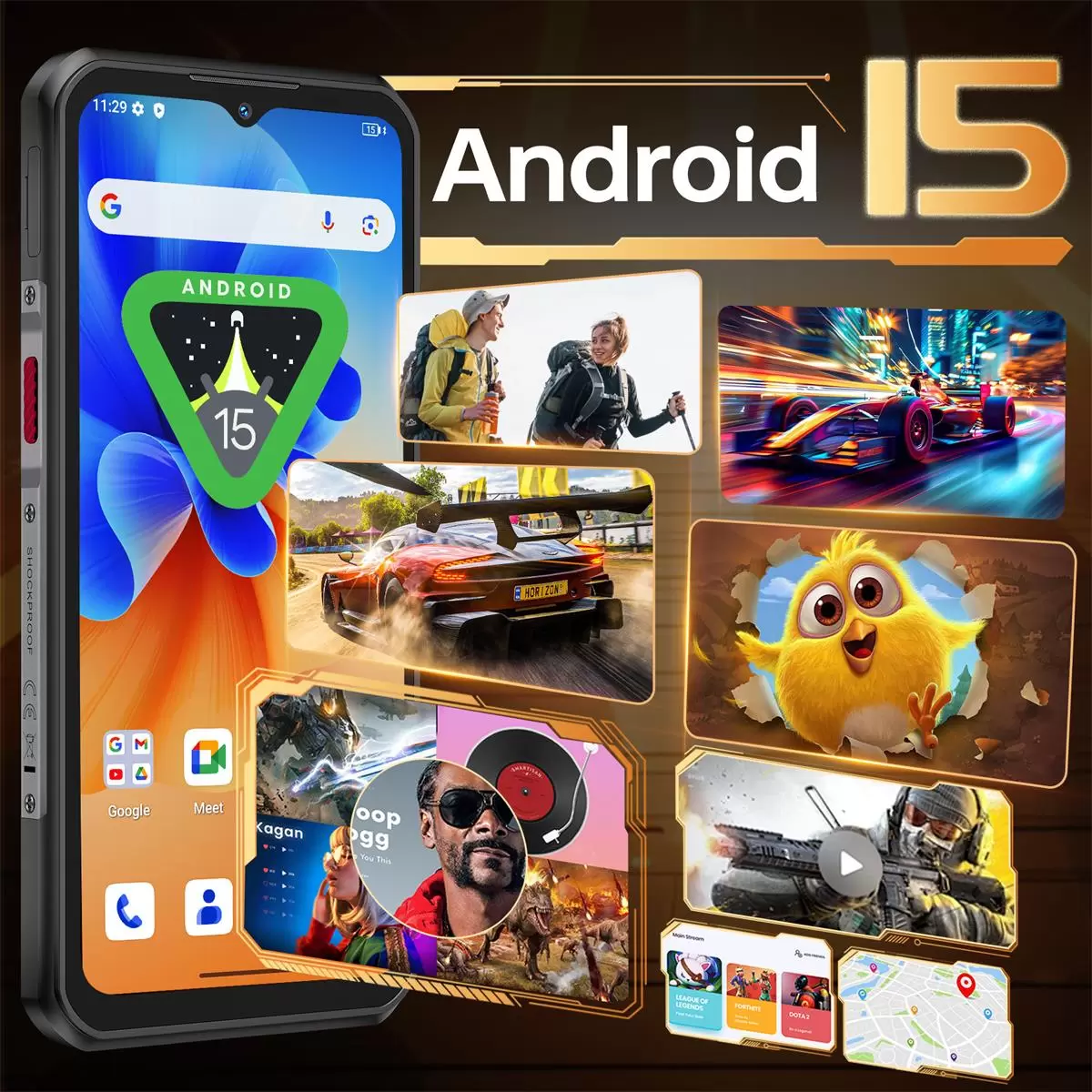 2. 24GB RAM + 256GB ROM / TF 2TB: The OUKITEL WP62 – your powerful 5G outdoor contract-free smartphone. Experience blazing-fast internet with 5G and Dual-SIM wherever you are. The 8GB of RAM can be expanded to a massive 24GB, guaranteeing absolute smoothness – even with demanding multitasking. Powered by the powerful Dimensity 7025 5G Octa-Core processor and with generous 256GB of internal storage (expandable up to 2TB), the WP62, together with Android 15, offers limitless freedom for creating your content. Enjoy a smooth, flexible, and utterly convincing smartphone experience that is ready for any adventure.